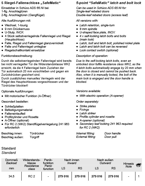 Schuco meerpuntslot Safematic 34,5/92/9 - 279016