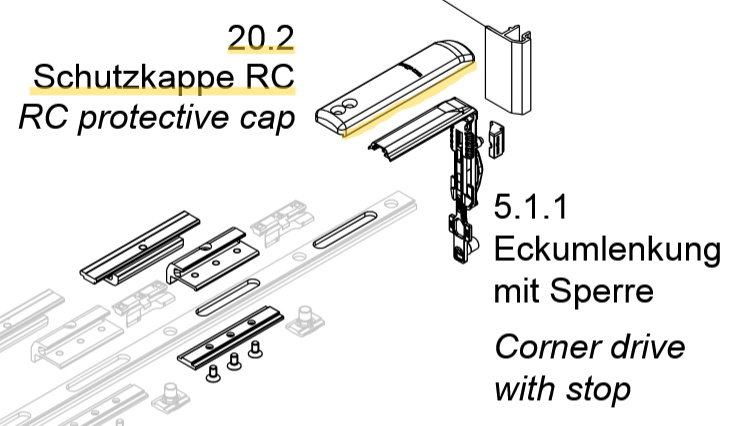 Schuco kapje t.b.v. hoekoverbrenger voor bovenlicht - 276270 / 243064Schuco beschermkap artikelnur 276270 t.b.v. hoekgeleiding met blokkering