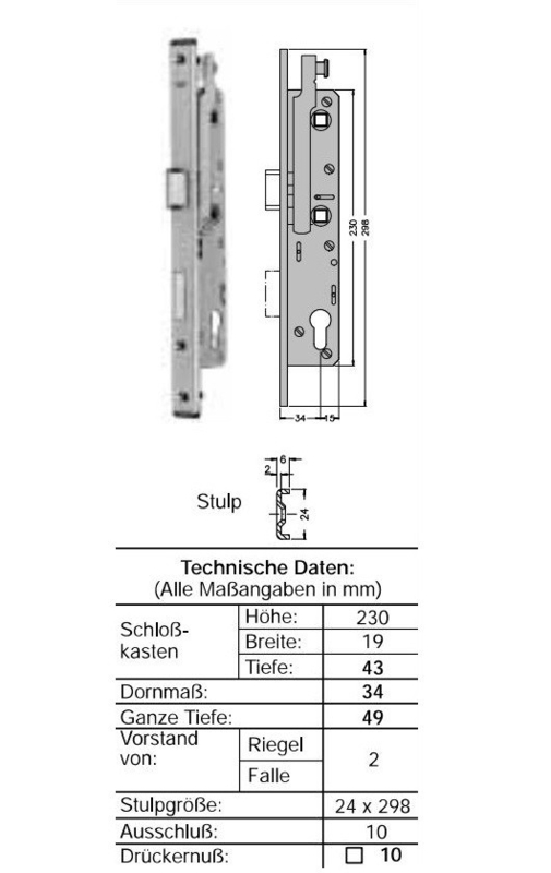 U-voorplaat 24 mm breed, 298 mm hoog€ 578,00 - Schuco antipaniek dag- en nachstlot - B 34/92/9 - 241977