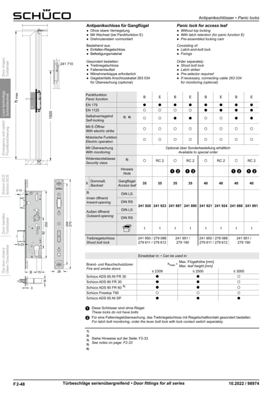 Bekijk goed de specificatie in de tweede afbeelding!€ 240,82 - Schuco zelfsluitend antipaniekslot B - 35/92/9 - 241827