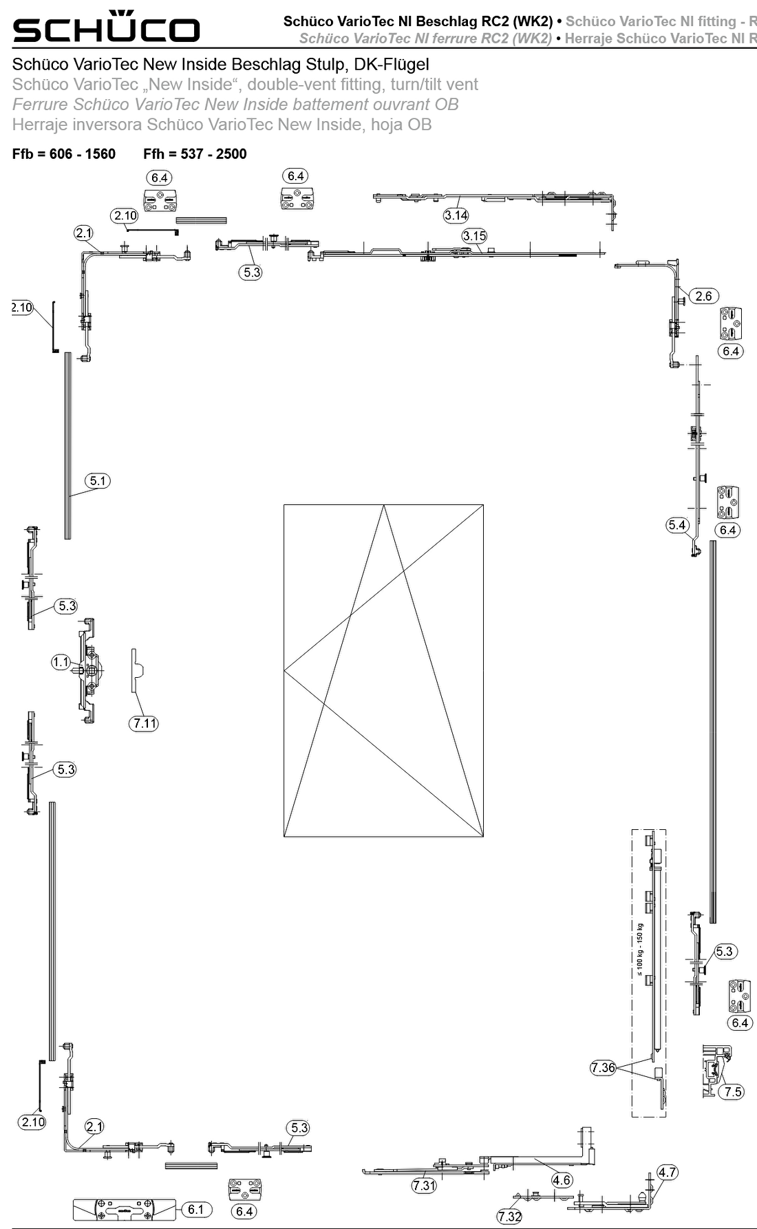 Espagnolet / kantschuif en toebehoren